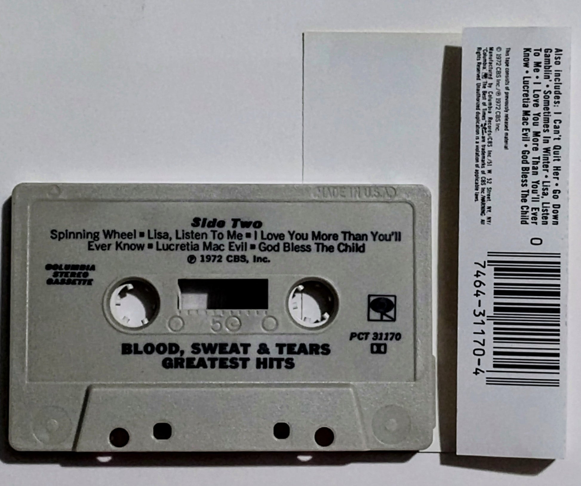 Blood, Sweat and Tears - "Greatest Hits" - CASSETTE TAPE VG+/VG+