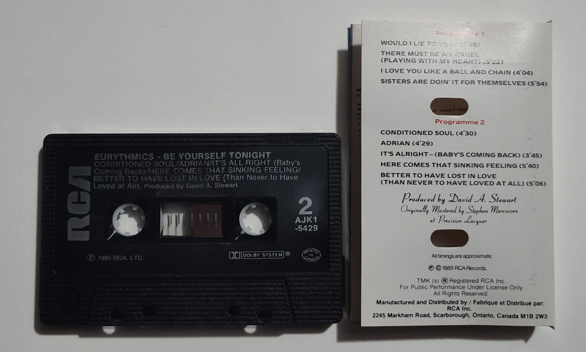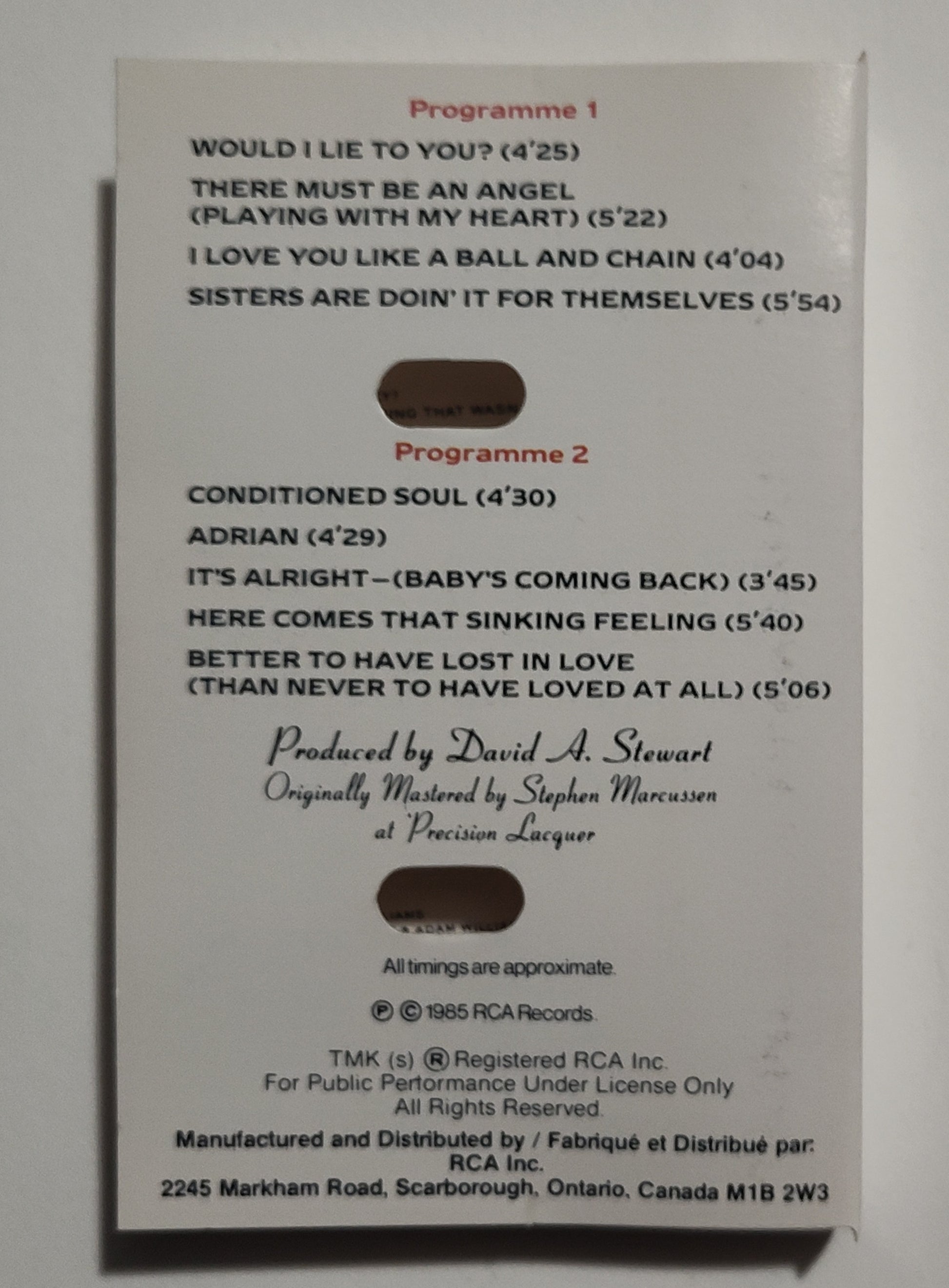 Eurythmics - "Be Yourself Tonight" - CASSETTE TAPE (Canada; black shell; DOLBY) VG+/VG+
