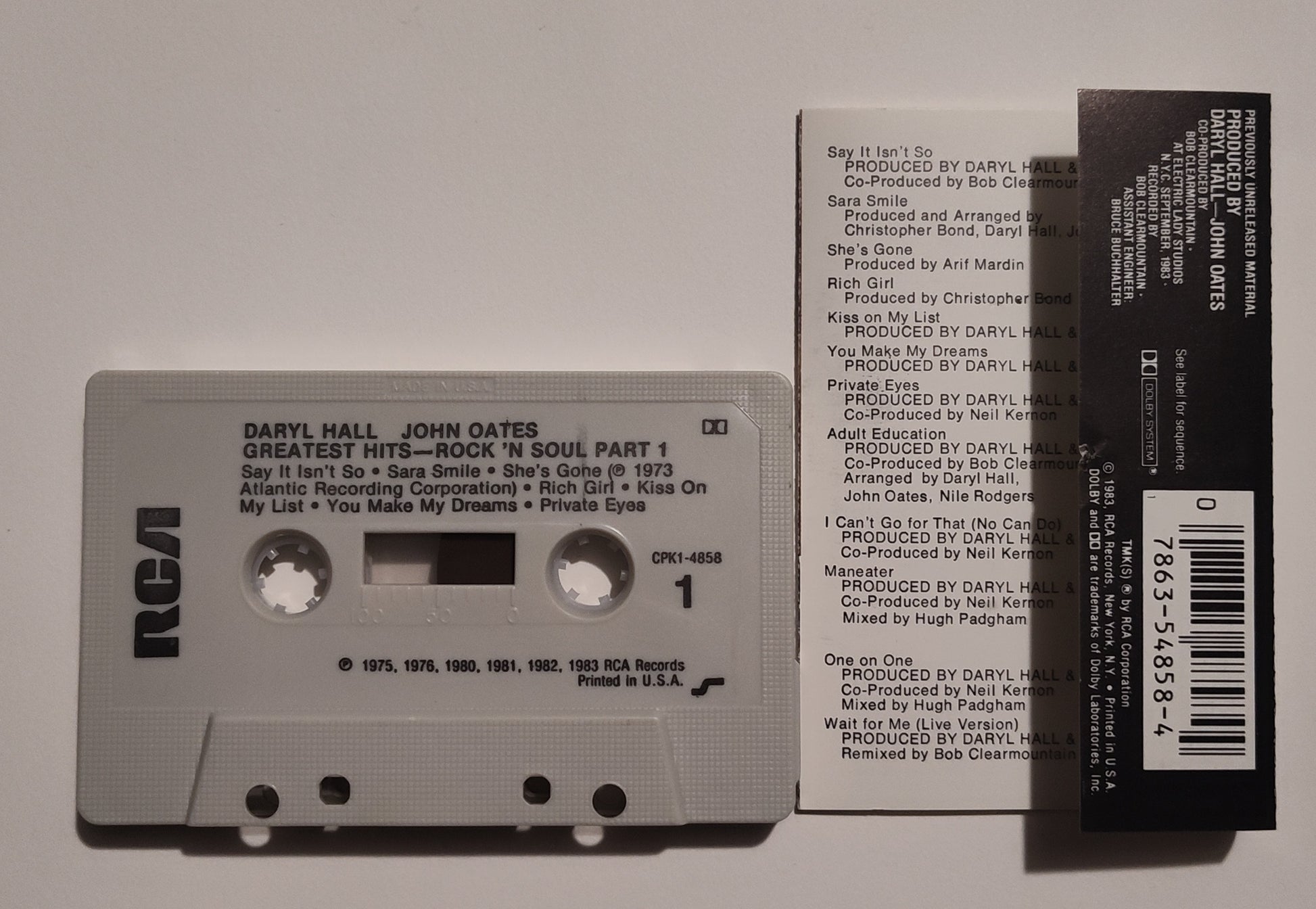 Hall & Oates - "Greatest Hits: Rock 'N Soul Part 1" - CASSETTE TAPE (DOLBY) VG/VG+