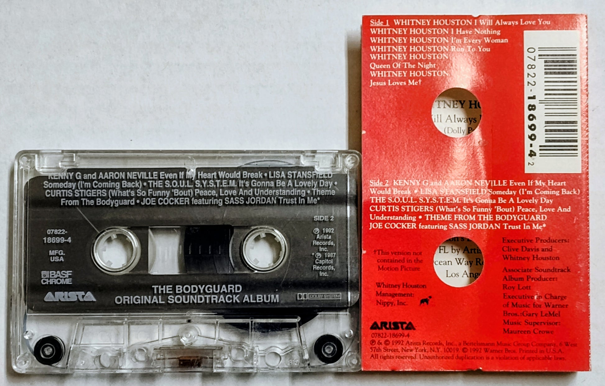 Whitney Houston - "The Bodyguard Soundtrack" - CASSETTE TAPE VG/VG